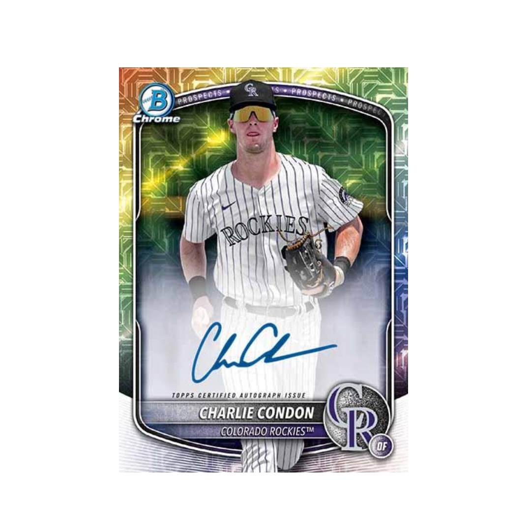 2025 Bowman Mega Box takes center stage featuring the coveted top-100 Base Set and Chrome Prospect cards from the 2025 Bowman Baseball on the exclusive collector's favorite Mega Chrome pattern!